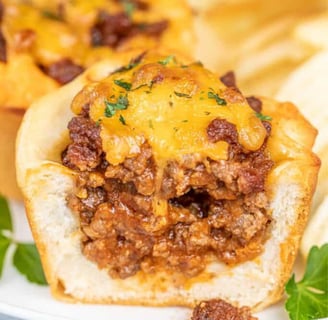 Spoon about 2 tablespoons of the sloppy Joe filling into each biscuit cup. If using, top with a sprinkle of shredded cheese.
