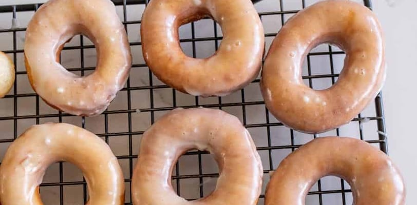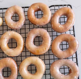 Dip each donut into the glaze while still warm, allowing any excess glaze to drip off before placing the donuts on a wire rack to set. If you want extra sweetness, you can roll the donuts in cinnamon sugar instead of glazing them.